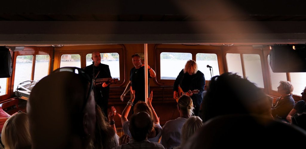 När vi lämnar kajen tar musiken vid. På akterdäck bjuds det på livemusik i två akter – jazz, pop eller coverband – med artisterna alldeles nära.