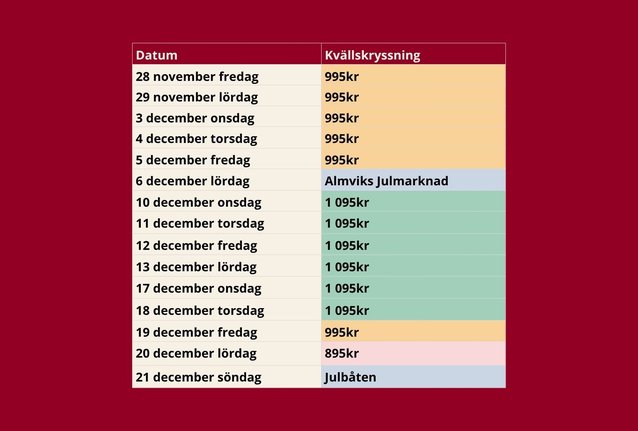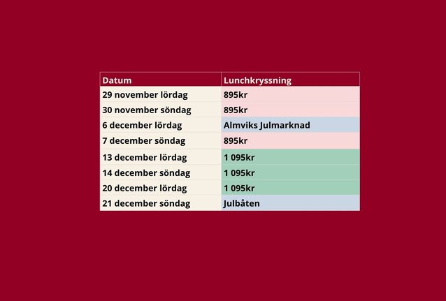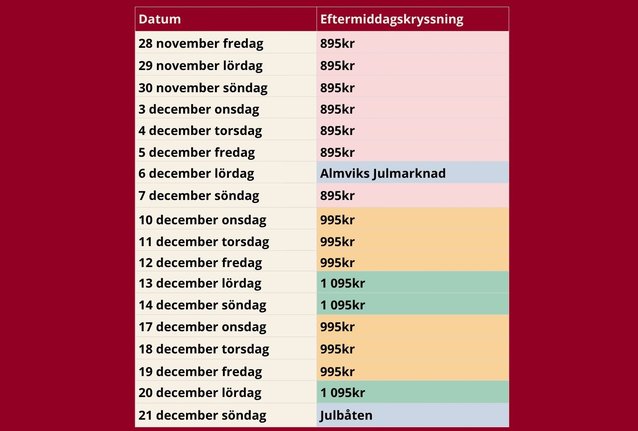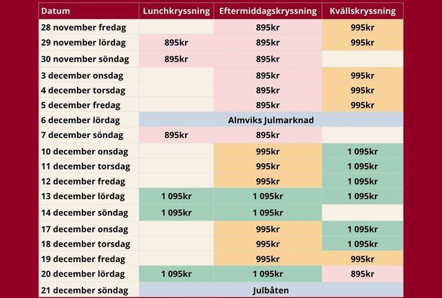 Gästen ansvarar för att vara införstådd och påläst med nödvändig information som gäller för bokat arrangemang och biljetter. All nödvändig information, så som avgångstider och avgångsställe, hittar du på www.blidosundsbolaget.se. För övriga frågor och funderingar kan du alltid kontakta Blidösundsbolagets kundtjänst.
