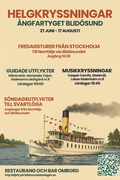 Äntligen är det dags – i helgen kör vi vår första ångfartygstur till Blidösundet och Norrtälje med avgång från Skeppsbron.